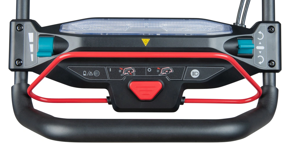 - ✔ Podwójne oświetlenie LED zapewnia widoczność ścieżki roboczej zarówno przed urządzeniem, jak i w dalszym obszarze pracy.