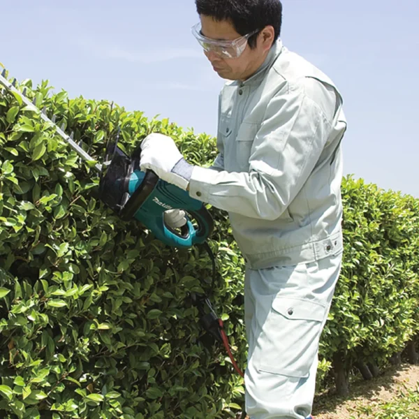 Model UH5261 zapewnia wysoki poziom bezpieczeństwa pracy, ponieważ posiada dwuręczny system włączania. Aby uruchomić urządzenie, należy użyć obu uchwytów, co zapobiega przypadkowemu włączeniu. Dodatkowo hamulec elektryczny zatrzymuje ostrze natychmiast po zwolnieniu spustu, co zmniejsza ryzyko urazu. Dzięki temu użytkownik zyskuje pełną kontrolę nad narzędziem w każdej sytuacji.