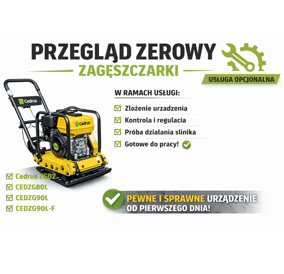 Przegląd zerowy to opcjonalna usługa serwisowa wykonywana przed wysyłką zakupionej zagęszczarki spalinowej. Urządzenie trafia do naszego serwisu, gdzie przechodzi montaż, kontrolę techniczną oraz test działania.