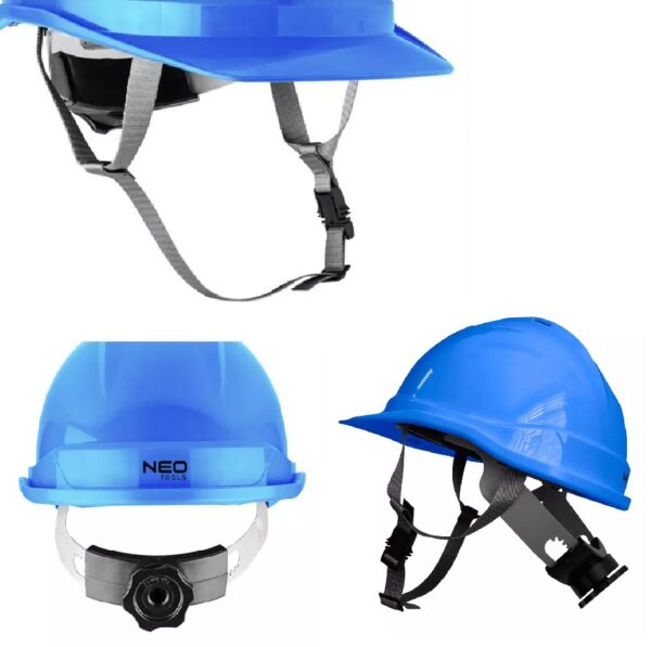 NEO Hełm przemysłowy z paskiem podbródkowym w kolorze niebieskim to niezawodne zabezpieczenie głowy, stworzone z myślą o profesjonalistach pracujących w wymagających warunkach. Łączy w sobie wysoką odporność, komfort użytkowania i nowoczesny design, zapewniając pełną ochronę podczas codziennych obowiązków.