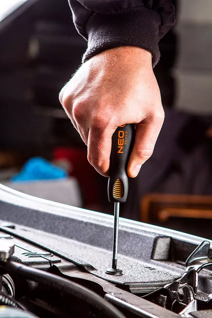 NEO TOOLS 04-210 Grot każdego wkrętaka wykonany z bardzo wytrzymałej stali S2, zapewniającej długą żywotność