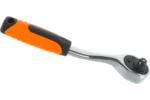 Mechanizm zapadkowy został wykonany z trwałej stali chromowo-molibdenowej, co gwarantuje odporność na intensywne użytkowanie. Dodatkowo, korpus grzechotki z wytrzymałej stali chromowo-wanadowej spełnia wymagania normy DIN 3122. Taka konstrukcja łączy wysoką wytrzymałość mechaniczną z niewielką wagą – dzięki temu narzędzie jest wygodne w transporcie i pracy bez utraty jakości.