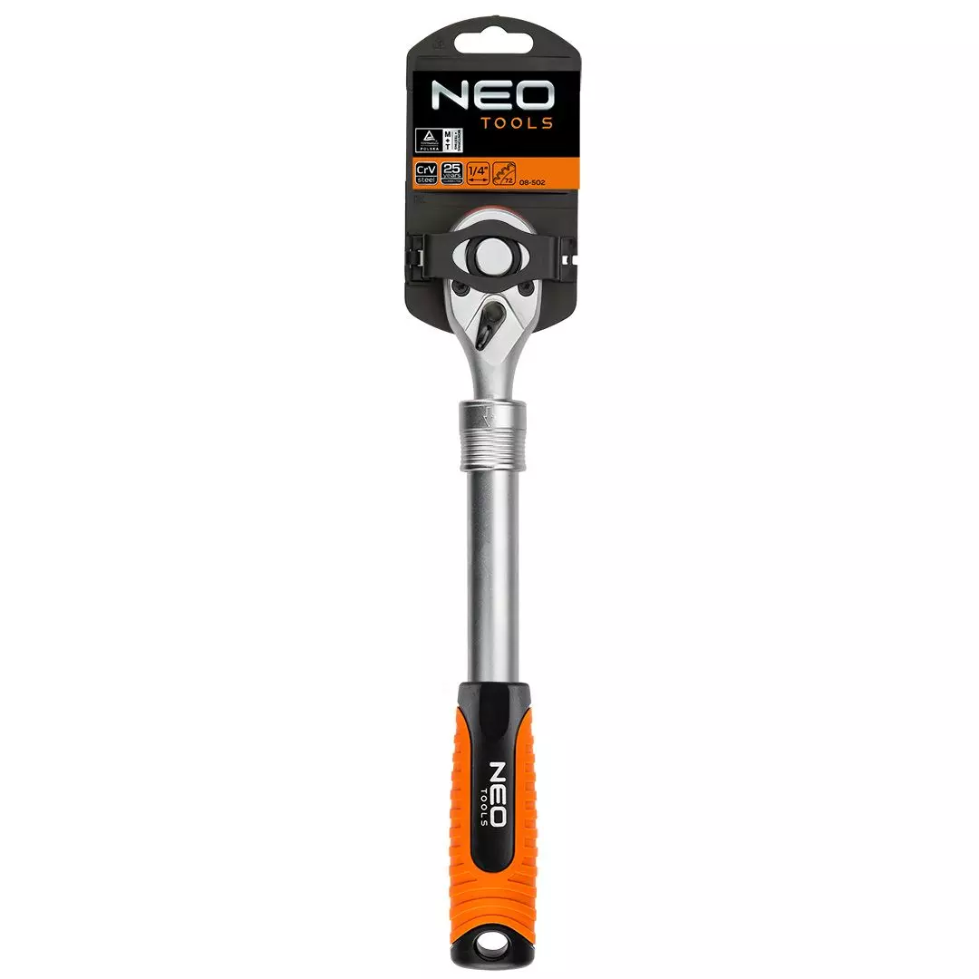 Ergonomiczna rękojeść wykonana z dwóch materiałów dobrze dopasowuje się do dłoni, dlatego zapewnia pewny chwyt nawet podczas wielogodzinnej pracy. Co istotne, teleskopowa konstrukcja pozwala szybko dostosować długość grzechotki do konkretnej sytuacji, co zwiększa moment obrotowy przy mniejszym nakładzie siły. W rezultacie, narzędzie ułatwia pracę i zapewnia lepszą kontrolę nad każdą czynnością. NEO TOOLS 08-515 to solidny, funkcjonalny model, który sprawdzi się w każdym warsztacie.