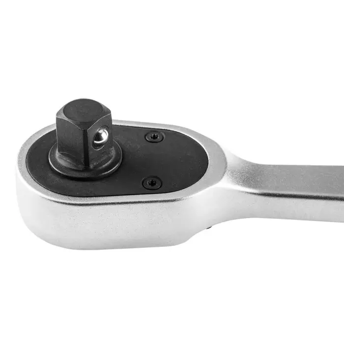Do produkcji grzechotki wykorzystano wyjątkowo trwałą kombinację stali chromowo-wanadowej i chromowo-molibdenowej, dzięki czemu narzędzie zyskuje wysoką odporność na zużycie oraz ekstremalne obciążenia. Co więcej, zastosowany wzmocniony kwadrat napędowy umożliwia przenoszenie dużych sił bez ryzyka uszkodzeń – nawet przy intensywnym, codziennym użytkowaniu.