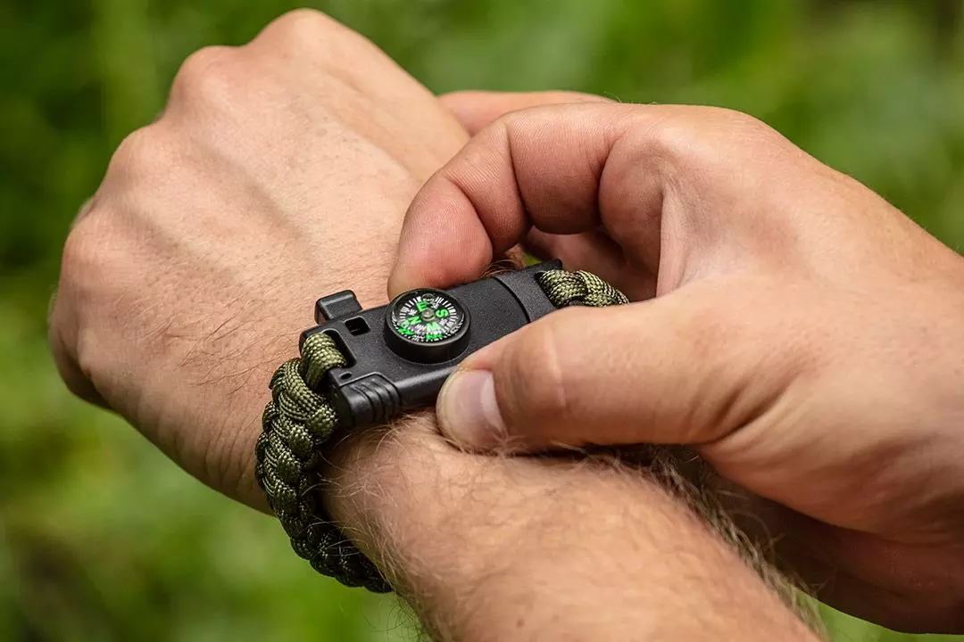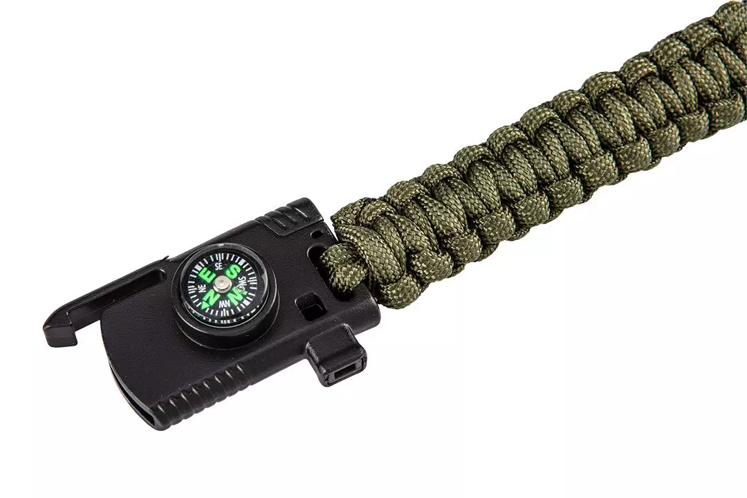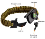 - ✔ Bransoletka survivalowa 5 w 1 – kompaktowe narzędzie dla miłośników przygód.