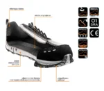 Wierzch półbutów wykonano z przewiewnego materiału, więc skutecznie wspiera termoregulację stóp i minimalizuje ryzyko przegrzania. Dodatkowo wewnętrzne siatkowe wykończenie jest miękkie, a wzmocniony czubek i zapiętek oferują ochronę oraz stabilizację stopy. Dzięki anatomicznemu dopasowaniu półbuty sprawdzają się zarówno na hali, jak i w magazynie oraz warsztacie.