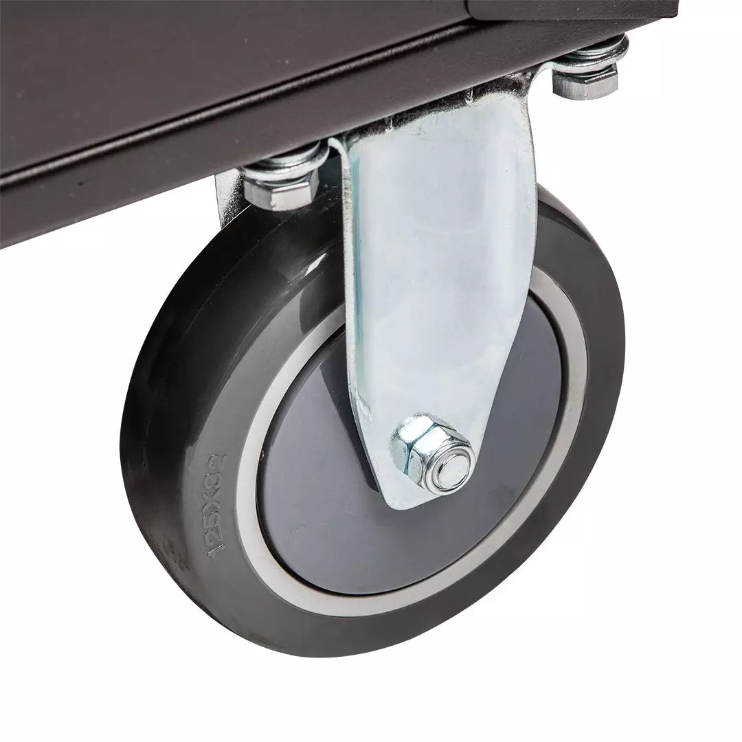 - ✔ Solidne koła o średnicy 125 mm zapewniają płynny i bezpieczny transport narzędzi.