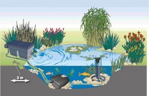 Różne funkcje poboru wody można indywidualnie przełączać i regulować. Możliwe są następujące kombinacje : 1.Filtracja dna stawu i filtr satelitarny ; 2.Filtracja dna stawu i skimmer ; 3.Ogólna filtracja dna stawu.