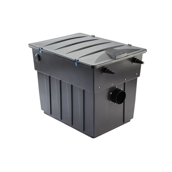 - 💧 Duża pojemność filtracyjna – do 90 000 l (bez ryb), 45 000 l (z rybami) i 22 500 l (koi), dzięki czemu sprawdzi się w dużych stawach i wymagających oczkach.