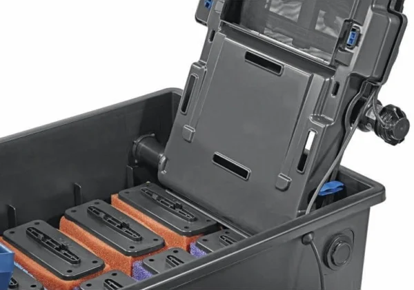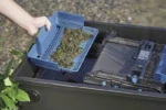 System Screenex zatrzymuje większe zanieczyszczenia wcześniej, dlatego gąbki wolniej się zapychają. Taśma z sitem przechwytuje osady, a następnie kieruje je do strefy zbierania. Kontrolka LED wykrywa zabrudzenie, więc automatycznie uruchamia przesuw taśmy. Co więcej, możesz uruchomić przesuw ręcznie przyciskiem, gdy chcesz przyspieszyć czyszczenie. Zebrany szlam trafia do dużego kosza, który łatwo wyjmiesz do opróżnienia. Dodatkowo lampa UVC Bitron C 55 W ogranicza zarodniki glonów, więc woda staje się bardziej przejrzysta. Dzięki temu wsparcie UVC działa skutecznie, a jednocześnie pozostaje bezpieczne dla ryb i roślin.