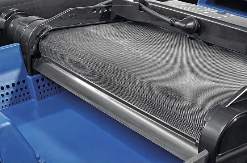 • Duży, łatwo wyjmowany kosz na szlam oraz dołączona szczotka do czyszczenia taśmy.