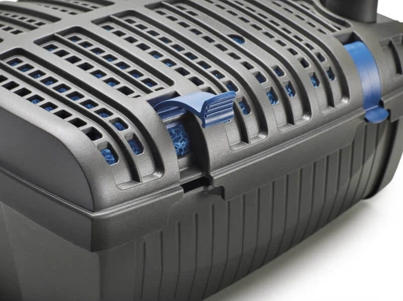 Filtral UVC 3000 pracuje całkowicie pod wodą, dlatego pozostaje niemal niewidoczny. Ponadto obudowa nie zakłóca estetyki oczka wodnego. Co więcej, praktyczne klipsy umożliwiają szybkie otwarcie urządzenia. Dodatkowo czyszczenie wkładów filtracyjnych przebiega bez demontażu fontanny. Dzięki temu użytkownik zyskuje wygodne i niezawodne rozwiązanie na długi czas.