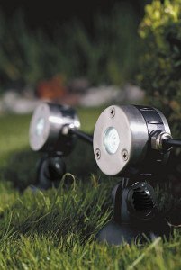 Świetlne akcenty w ogrodzie i w stawie w zimnej lub ciepłej bieli