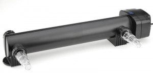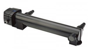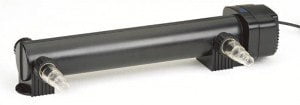 Uniwersalna lampa UVC Oase Vitronic 55 W w pełni pomoże Ci wyeliminować zarodniki glonów, bakterie oraz inne szkodliwe organizmy w Twoim oczku wodnym, nie zagrażając przy tym bezpieczeństwu ryb i roślin. Dodatkowo urządzenie to można łączyć z prawie wszystkimi popularnymi filtrami stawowymi, dzięki czemu jest wszechstronny. Mechanizm działania lampy jest bardzo prosty ,a jednocześnie wysoce skuteczny: specjalne promienie UV szybko likwidują bakterie i zarazki oraz zbrylają zielone algi. Jeśli tak uzdatniona woda przepłynie następnie przez filtr stawowy, pozostałości pozostaną w gąbkach filtracyjnych. W rezultacie otrzymujesz niesamowicie czystą wodę w stawach o pojemności do 60 m³. Lampa nadaje się również do zarybionych oczek wodnych o maksymalnej pojemności 30 m³, w przypadku karpi koi do 15 m³.