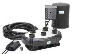 Niewielkich rozmiarów jednostka sterująca, służy do zaprogramowania systemu fontannowego wraz z oświetleniem. Dzięki niej możesz dostosowywać do własnych potrzeb stałe programy zestawu, w tym intensywność diod LED-owych, wzory fontann, a także wysokość słupa wody (30-140 cm). Całkowite zużycie energii to tylko 50 W. Dodatkowym atutem jest możliwość użytkowania fontanny w stawach kąpielowych, ponieważ posiada ona transformator niskiego napięcia 12 V.