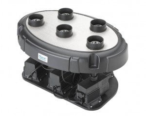 Zostań projektantem elementów wodnych, ponieważ kreatywność Oase Water Quintet pozwala na tworzenie spektakularnych i przyciągających wzrok pokazów wodnych. Sama fontanna składa się z pięciu pomp, a do pompy podłączone są dysze które bez problemu można regulować na maksymalną wysokość 20 cm. Każda z dysz posiada otwór, pozwalający na maksymalną wysokość wylotu wody do 1,4 metra, dodatkowo w te dysze wbudowane jest oświetlenie LED (6 diod na dyszę) emitujące ciepłe białe światło.