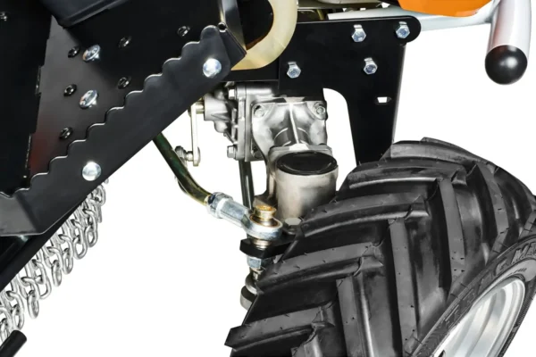 Apache 92 PRO 4WD oferuje nie tylko moc, ale również komfort codziennej obsługi. Ergonomiczne stanowisko operatora obejmuje regulowany fotel, który można dostosować do własnych preferencji. Ponadto tempomat pozwala utrzymać stałą prędkość na prostych odcinkach trasy. Gałka na kierownicy ułatwia manewrowanie, zwłaszcza wśród drzew i krzewów. Co ważne, schowki rozmieszczone wokół fotela zwiększają wygodę pracy, ponieważ masz wszystko pod ręką. Dodatkowo, duże koła – 16×6,50-8 z przodu i 20×10,00-8 z tyłu – poprawiają stabilność na nierównym podłożu. Dzięki promieniowi skrętu wynoszącemu 65 cm łatwo wykonasz precyzyjne manewry nawet w wąskich przestrzeniach.