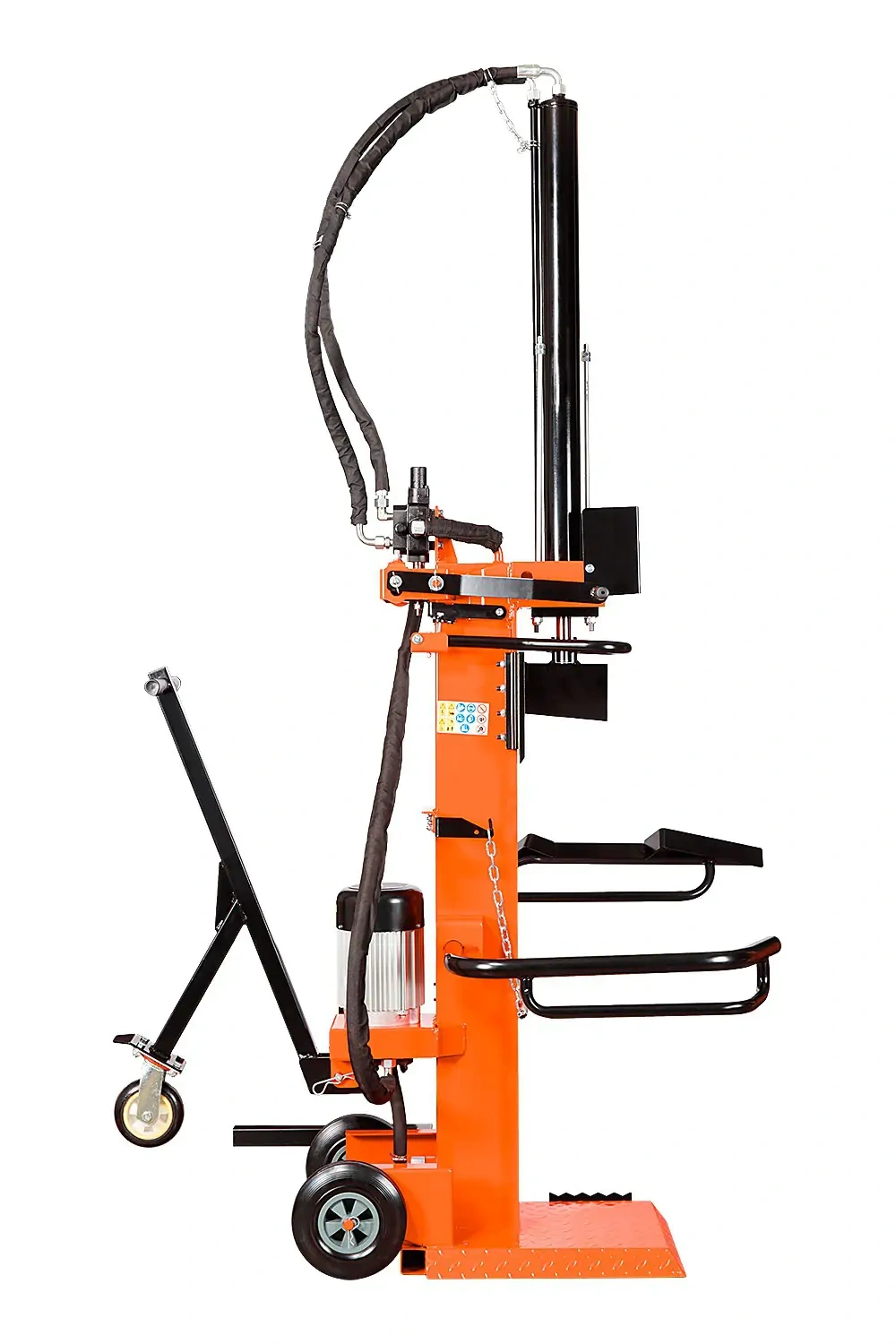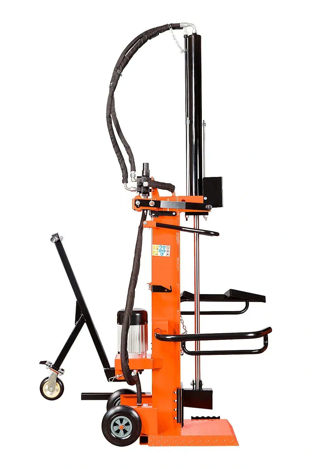Nacisk 10 ton pozwala sprawnie rozłupywać drewno bez użycia siekiery, dzięki czemu ograniczasz wysiłek fizyczny i ryzyko typowe dla pracy ręcznej. Praca jest bardziej uporządkowana, szybsza i mniej męcząca – szczególnie przy regularnym przygotowywaniu opału na sezon.