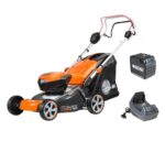 Niezawodna kosiarka akumulatorowa z napędem klasy premium Oleo-Mac GI 44 T, to wydajne i ekologiczne urządzenie wyposażone w mocny, bezemisyjny silnik indukcyjny. Silnik ten zasilany jest jednym lub dwoma akumulatorami 40V o pojemności 5,0 Ah (Jedne akumulator wraz z ładowarką zawarte w zestawie) umożliwiającym na skoszenie nawet do 250 m² – to więcej niż powierzchnia kortu tenisowego ! Kolejną zaletą silnika zasilanego akumulatorowo jest jego przyjemnie cicha praca, a także niewielkie czynności związane z jego konserwacją. Wszystko to sprawia, że praca z kosiarką GI 44 T jest niezwykle prosta i wygodna.