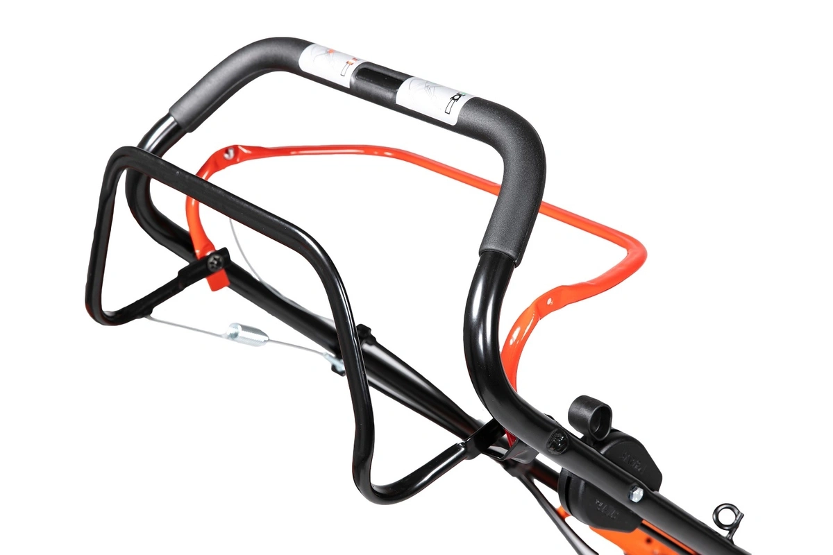 Miękki, ergonomiczny uchwyt poprawia pewność chwytu i pomaga ograniczać odczuwanie drgań podczas pracy. To detal, który realnie zwiększa wygodę operatora podczas dłuższego koszenia.