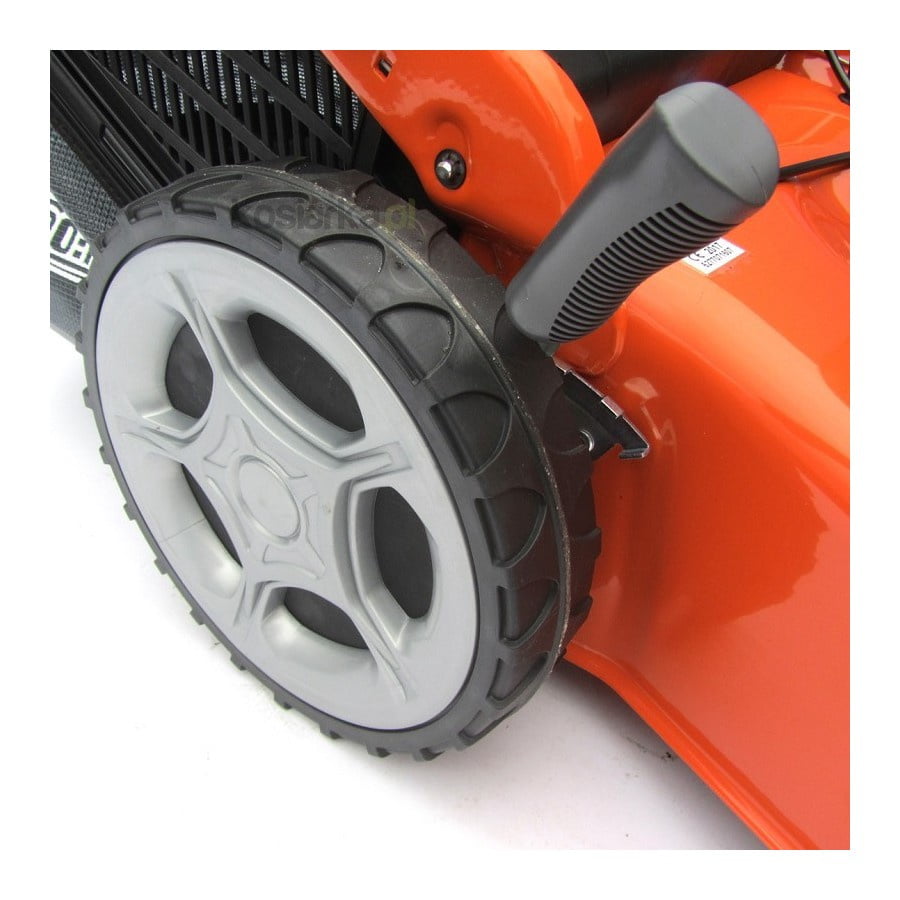 Dzięki niezwykłemu systemowi tnącemu można wybrać jedną z 3 różnych funkcji koszenia: zbieranie/ wyrzut tylny, idealny do cięcia najdłuższych skoszonych kawałków trawy/ mulczowanie. Mulczowanie polega na rozdrabnianiu trawy i rozprowadzaniu jej na trawniku w celu użyźnienia gleby, dzięki czemu Twój trawnik zawsze będzie wyglądał prestiżowo. Duże przednie koła o średnicy 200 mm i tylne 280 mm na łożyskach kulkowych idealnie sprawdzają się przy manewrowaniu kosiarką, nawet na nierównym terenie. Ponadto model GV 53 TK ALLROAD 3 posiada ergonomiczną kierownicę z miękkim uchwytem przy której znajdują się dźwignie stopu oraz napędu.