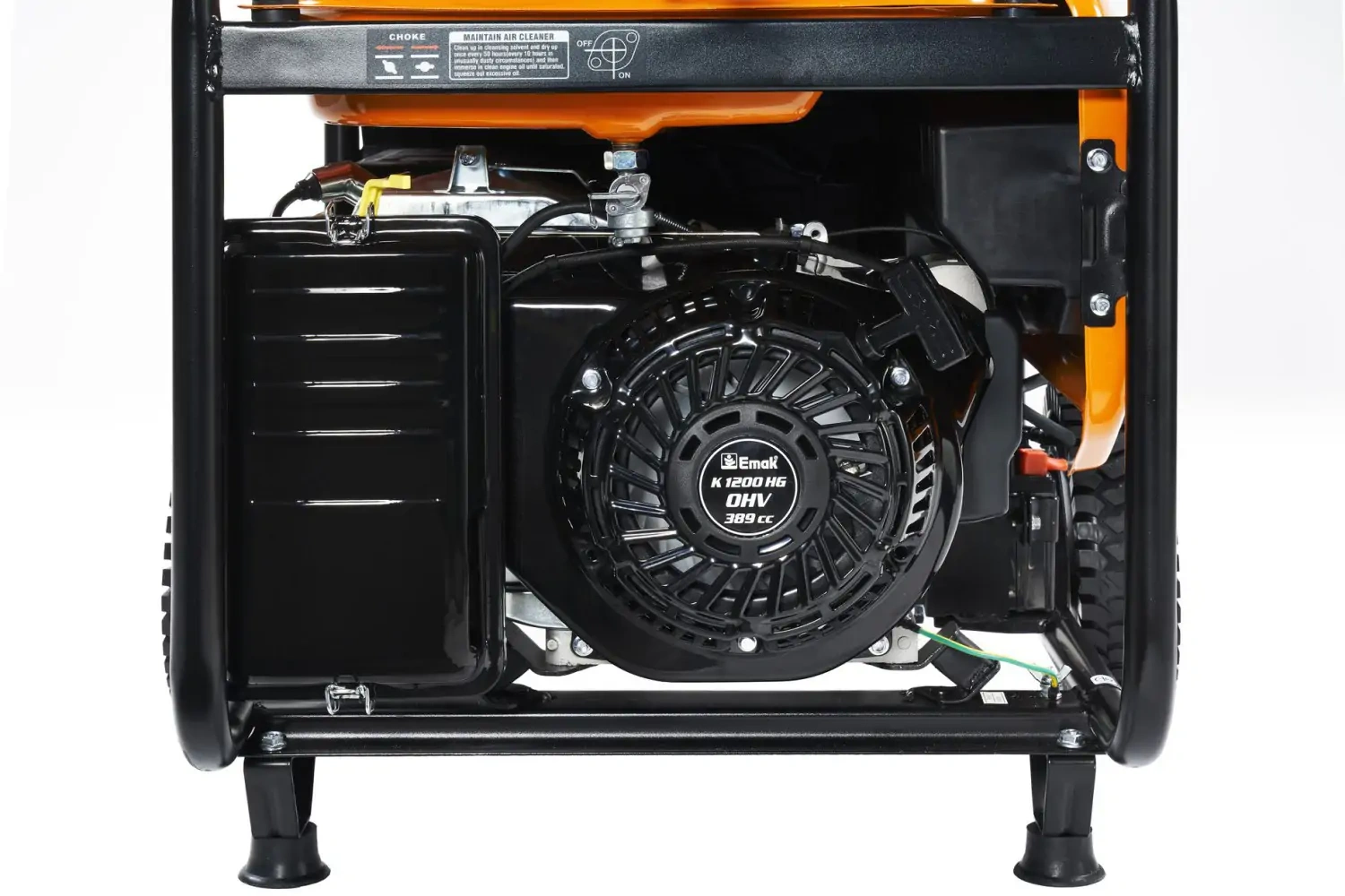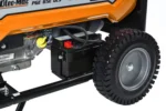Koła transportowe 9,5″ ułatwiają przemieszczanie urządzenia między stanowiskami pracy. To ważne szczególnie wtedy, gdy agregat nie stoi stale w jednym miejscu i musi być regularnie przetaczany po posesji lub placu roboczym.