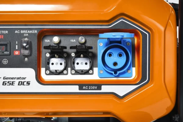 Jedną z największych zalet wersji PGE65E DCS jest połączenie klasycznego rozruchu ręcznego z wygodnym rozruchem elektrycznym. W praktyce oznacza to szybsze i bardziej komfortowe uruchamianie urządzenia, co ma szczególne znaczenie wtedy, gdy agregat ma być gotowy do pracy bez zbędnego wysiłku. Tego typu rozwiązanie dobrze sprawdza się zarówno w zastosowaniach awaryjnych, jak i podczas regularnej pracy tam, gdzie agregat uruchamiany jest często i liczy się wygoda obsługi już od pierwszej chwili.