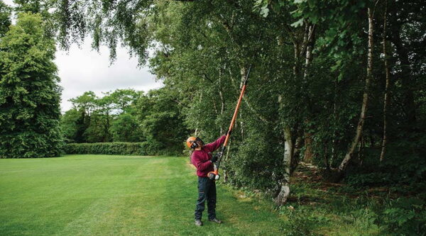 Do kolejnych atutów w modelu PTT-265 ES można zaliczyć teleskopowy drążek którego długość całkowita wynosi 2,72 m i rozsuwana do długości 3,72 m. Profesjonalny uchwyt teleskopowy wykonany został z włókna szklanego zapewnia stabilność i lekkość sekatora. Pracuj szybko i bezpiecznie z ziemi na odległość ponad 3,5 metra: koniec z niebezpiecznym żonglowaniem na chwiejnych rusztowaniach i drabinach. Sekator wysięgnikowy PPT-265 ES firmy ECHO umożliwia bezpieczną i kontrolowaną pracę z ziemi, nawet na dużych wysokościach. To wszystko sprawia, że komfort pracy nawet w trudno dostępnych miejscach jest na najwyższym poziomie. Jest to niezastąpione narzędzie w każdym sadzie i wszędzie tam, gdzie dostęp do wykonania pielęgnacji korony drzew jest utrudniony.