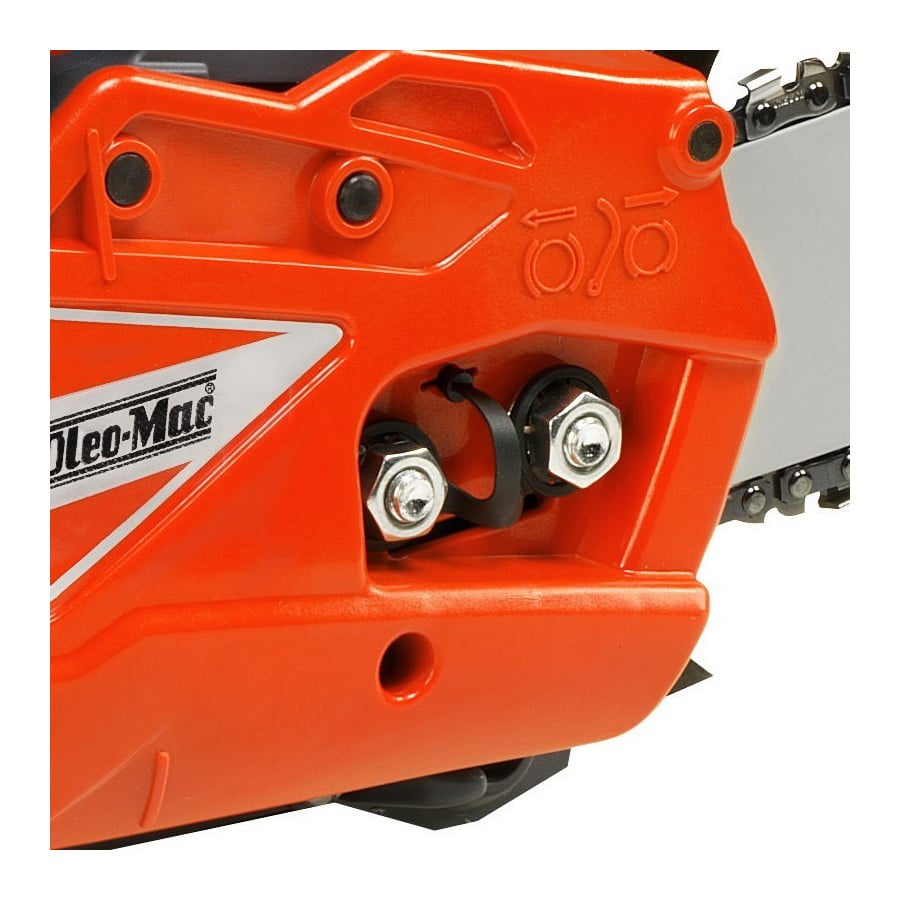 O bezpieczeństwo podczas użytkowania dba bezwładnościowy hamulec łańcucha, który zadziała natychmiastowo w przypadku odbicia. Uchwyt łańcucha służy również jako przednia osłona dłoni. Kolejną zaletą Oleo-Mac GS 371 jest doskonały stosunek mocy do masy, dzięki czemu urządzenie jest wygodne i łatwe do kontrolowania przez długi czas.