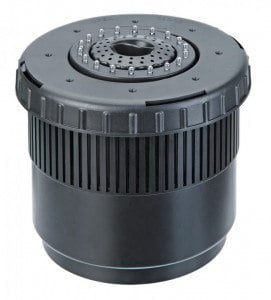 Pontec PondoAir Set 1200 LEDoferuje zupełnie inną koncepcję napowietrzania stawu. Ten kompletny, łatwy w instalacji zestaw do napowietrzania stawuniezawodnie dostarcza tlen dla ryb i roślin w stawie, jednocześnie zwiększając filtrację stawu. Sercem zestawu jest potężna pompa fontannowa zapewniająca przepływ 1200 litrów na godzinę. Pompa zasysa wodę przez zintegrowaną piankę filtracyjną i kamyki filtracyjne; woda ta jest następnie przepuszczana przez zwężkę Venturiego, która zasysa powietrze z powierzchni stawu przez rurkę przymocowaną do sztucznej pływającej lilii. Powietrze unosi się z dna stawu, powodując ciągłe napowietrzanie stawu i ryb. Ponadto zestaw ten oferuje neutralny biały pierścień świateł LED, który oświetla kolumnę bąbelków unoszących się na powierzchni w dzień iw nocy, tworząc atrakcyjny element w Twoim stawie. Dostarczony wąż napowietrzający ma 80 cmi chociaż można go przedłużyć, umieszczenie jednostki głównej głębiej wpłynęłoby na ilość pęcherzyków powietrza wytwarzanych przez zwężkę Venturiego.