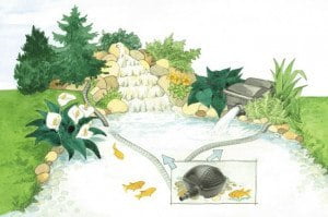 Pompy filtracyjne i strumieniowe PondoMax odznaczają się szczególnie swoją niezawodnością i energooszczędnością! Bez problemu przetłaczają cząsteczki zanieczyszczeń o wielkości 4 lub 8 mm. Zasilają także strumienie i wodospady – dzięki temu staw naprawdę zostaje wprawiony w ruch !