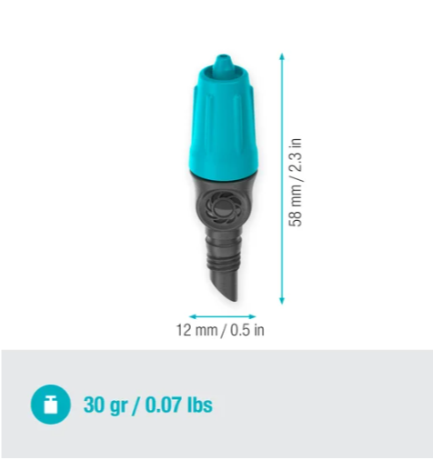 Dzięki możliwości regulacji przepływu w zakresie od 0 do 15 litrów na godzinę, możesz dokładnie dopasować ilość wody do potrzeb każdej rośliny. Kroplownik można zamontować na końcu rurki 4,6 mm lub bezpośrednio w rurze montażowej 13 mm, co zapewnia dużą elastyczność instalacji.