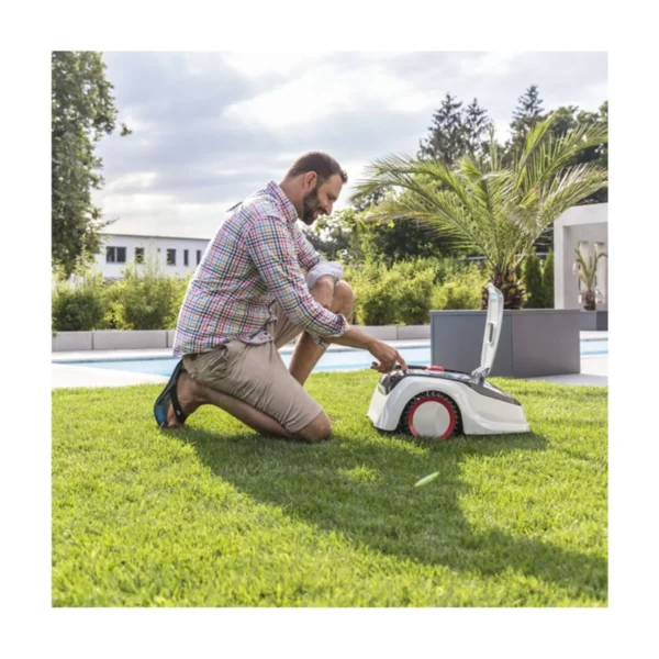 Czujniki wstrząsów, nachylenia i podnoszenia gwarantują bezpieczny proces koszenia. Robot natychmiast reaguje na przeszkody, zmieniając kierunek, aby uniknąć kolizji. Czujniki nachylenia zapobiegają przewróceniu się, a podczas podnoszenia robotu ostrza zostają natychmiast zatrzymane, chroniąc przed przypadkowymi skaleczeniami.