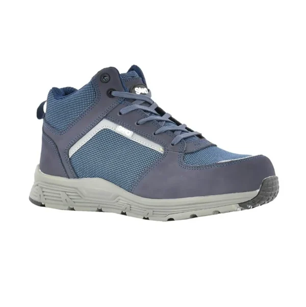 Granatowa cholewka z jaśniejszymi akcentami dodaje butom profesjonalnego wyglądu, który sprawdzi się zarówno na placu budowy, jak i w codziennym użytkowaniu. Anatomiczna wkładka z lekkiej pianki i praktyczne sznurowanie pozwalają idealnie dopasować buty do kształtu stopy, gwarantując maksymalny komfort przez cały dzień.