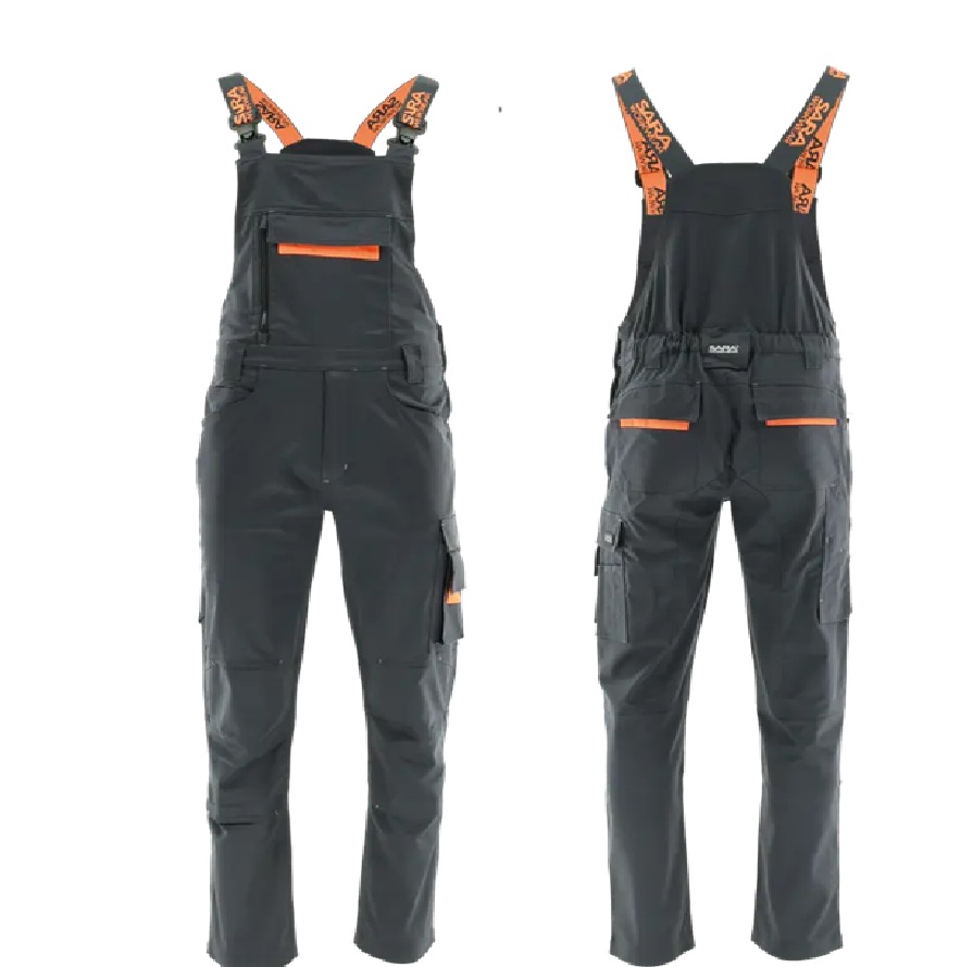 SARA Spodnie ogrodniczki ACTIFLEX (szary-pomarańczowy)