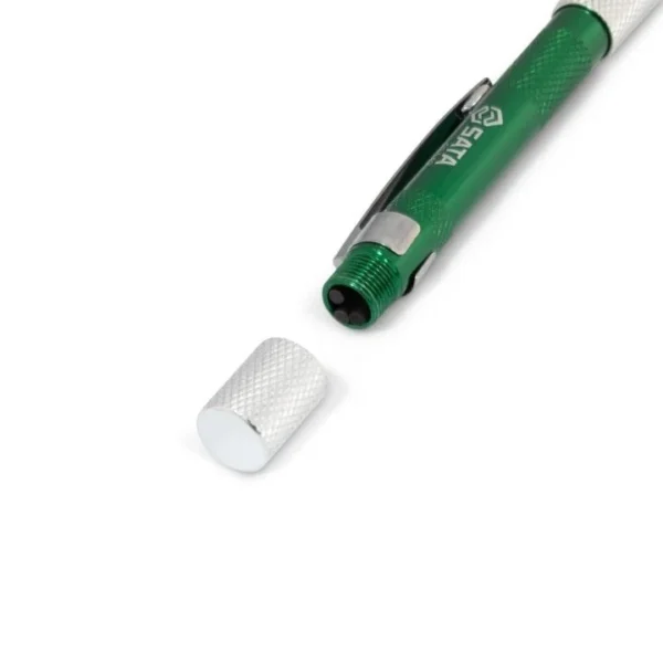 Wykonany z anodyzowanego aluminium korpus zapewnia odporność na korozję i uszkodzenia, a ergonomiczny kształt w formie długopisu gwarantuje komfort użytkowania. Wbudowany system blokady pozwala na stabilne trzymanie bitów, co zwiększa precyzję pracy.
