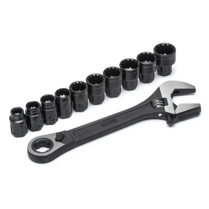 Klucz nastawny 8″ z funkcją klucza do rur (w zestawe z 10-cioma nasadek)