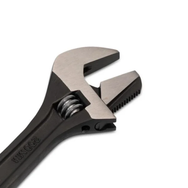 Wykonany z wysokiej jakości stali, klucz cechuje się ponadprzeciętną wytrzymałością i długą żywotnością. Powłoka z czarnego tlenku zapewnia ochronę przed korozją, co czyni go niezawodnym partnerem nawet w trudnych warunkach. Szeroko otwierana szczęka daje możliwość pracy z większymi elementami, a odwracalna dolna szczęka pozwala używać narzędzia również do pracy przy rurach – zwiększając jego funkcjonalność.
