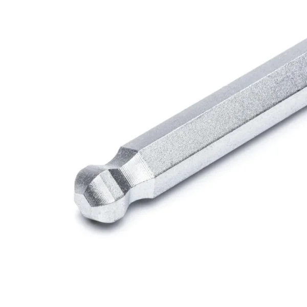 Każdy klucz w zestawie został wydłużony aż o 30%, co umożliwia łatwiejszy dostęp do trudno dostępnych śrub i zwiększa siłę dźwigni. Końcówki kulowe pozwalają na pracę pod kątem, co znacznie podnosi komfort i efektywność działania. Idealnie wyprofilowane trzpienie zapewniają pewny chwyt i szybkie dopasowanie do gniazda, a sfazowane końcówki ułatwiają precyzyjne wsunięcie narzędzia.