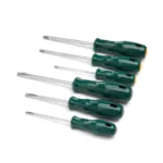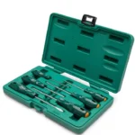 Każdy wkrętak z zestawu SATA został wykonany z wysokiej jakości stali stopowej, zapewniającej maksymalną trwałość i odporność na zużycie. Hartowane ostrza gwarantują niezawodność nawet przy intensywnym użytkowaniu, a rękojeści z odpornego na uderzenia acetalu zapewniają doskonały chwyt i pewność podczas pracy. Dodatkowo uchwyty są odporne na działanie olejów i rozpuszczalników, co znacznie wydłuża żywotność narzędzi.