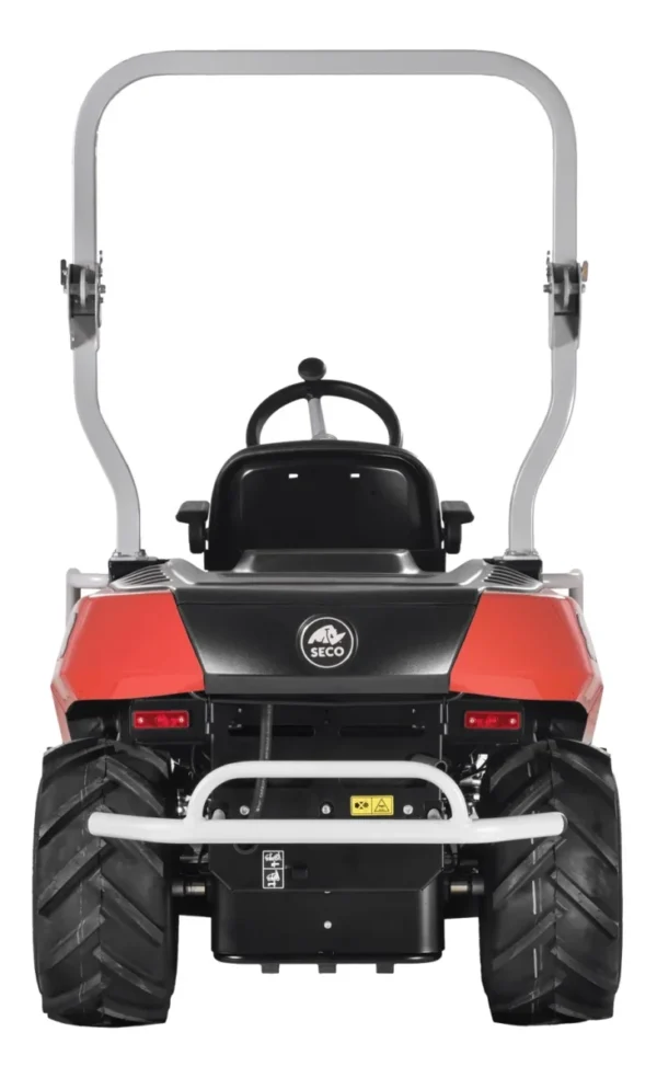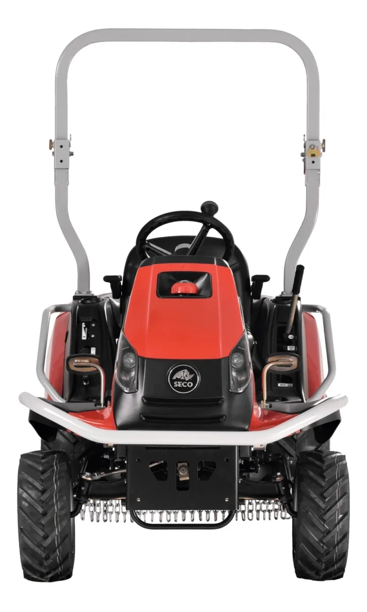 System ROPS (składany ram bezpieczeństwa) w Seco Goliath GC XX-23 4×4 zwiększa bezpieczeństwo operatora, zapewniając dodatkową ochronę w przypadku przewrócenia się traktora. Elektromagnetyczne sprzęgło z funkcją Soft Start zapewnia płynne uruchamianie urządzenia tnącego, minimalizując wstrząsy i zwiększając komfort pracy.