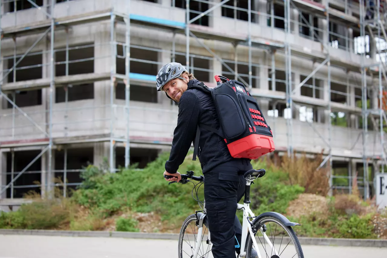 Plecak oferuje dodatkową przestrzeń na drobne akcesoria, elementy złączne i części zamienne. Dzięki temu wszystko masz zawsze pod ręką – bez potrzeby noszenia dodatkowych toreb.