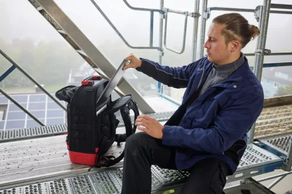 Wiha 45529 pełni rolę mobilnego warsztatu, ponieważ oferuje miejsce nie tylko na narzędzia, ale także na dokumenty i elektronikę. Ponadto oddzielna, wyściełana przegroda chroni laptop i tablet przed wstrząsami oraz zarysowaniami. Dodatkowo użytkownik może bezpiecznie przewozić instrukcje, rysunki techniczne i niezbędne notatki. Co więcej, plecak wspiera pracę w terenie, gdzie specjaliści muszą łączyć zadania serwisowe z dokumentacją. Dzięki temu każdy element wyposażenia pozostaje uporządkowany, łatwo dostępny i odpowiednio zabezpieczony.
