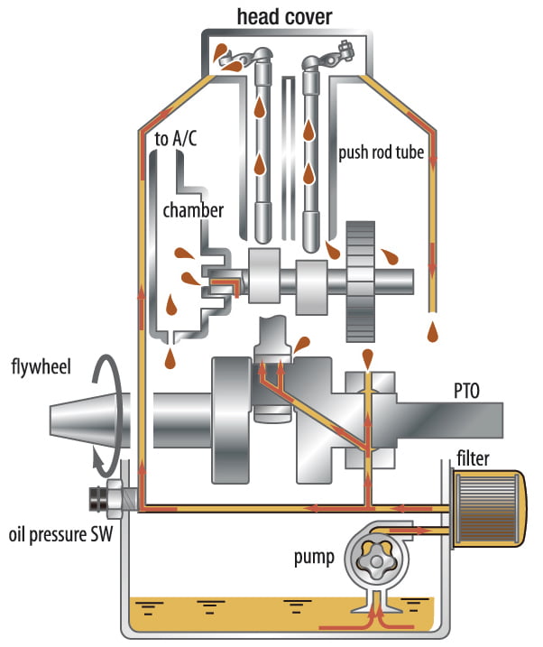 - Łożyska wału korbowego zasilane ciśnieniem
