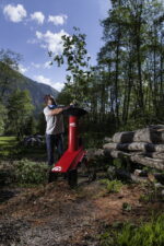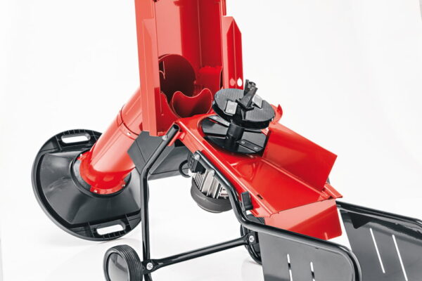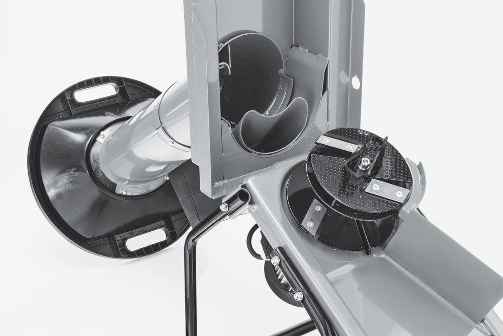 I Wyposażony w szeroki lejek na drobniejszy materiał oraz specjalny podajnik na większe gałęzie o grubości nawet 43 mm.