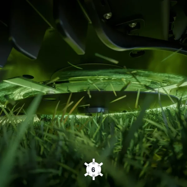 - ✔ Ciągłe mulczowanie trawy sprzyjające zagęszczaniu oraz zdrowemu wyglądowi murawy.