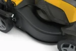 Szerokość koszenia 41 cm pozwala na szybkie i precyzyjne koszenie, a centralna regulacja wysokości w 6 pozycjach (od 22 do 65 mm) dostosowuje się do każdego terenu. Zbieraj ścinki do pojemnego 60-litrowego hybrydowego kosza z czytelnym wskaźnikiem napełnienia. Ergonomiczna, regulowana kierownica z podwójnym włącznikiem i składana po koszeniu ułatwiają przechowywanie.