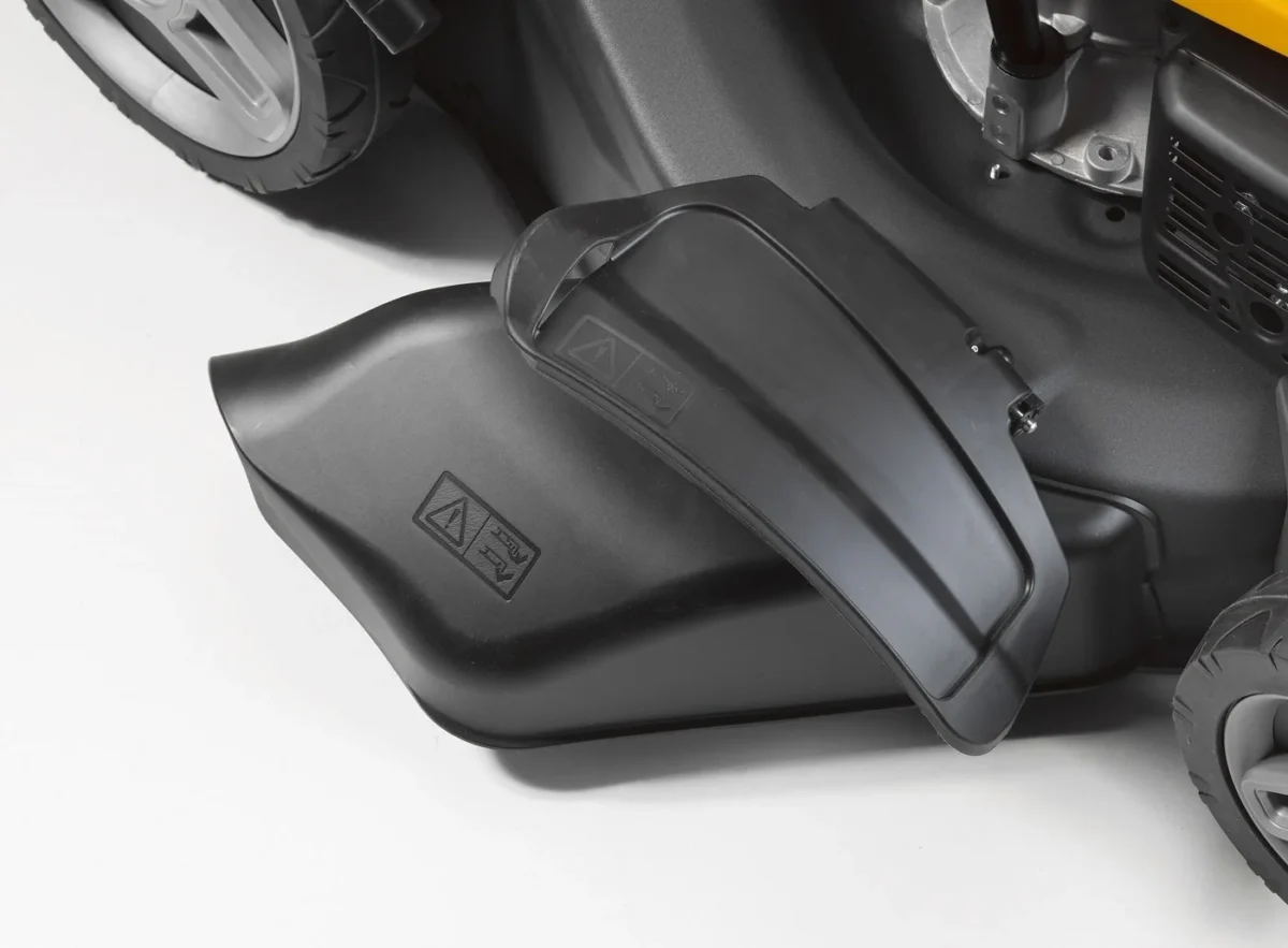Stiga Combi 50 SVQ wyróżnia się wytrzymałą konstrukcją i dużymi kołami (200 mm z przodu, 280 mm z tyłu) na łożyskach kulkowych, które ułatwiają manewrowanie, nawet na nierównych terenach. Dzięki systemowi mycia obudowy możesz szybko wyczyścić kosiarkę – wystarczy podłączyć wąż ogrodowy do złącza i uruchomić silnik, aby oczyścić spód kosiarki z resztek trawy.