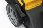 Ergonomiczna kierownica z miękkim uchwytem, regulowana według wzrostu użytkownika, zwiększa komfort pracy, a po skończeniu koszenia można ją łatwo złożyć, aby zaoszczędzić miejsce. Stiga Combi 53 SVQ H wyposażona jest również w duże przednie i tylne koła (200/280 mm) na łożyskach kulkowych z miękkim bieżnikiem, które zapewniają płynne manewrowanie nawet po nierównym terenie.