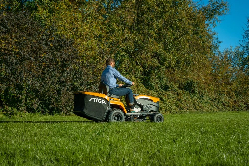 Estate 384e stawia na prostą i intuicyjną obsługę: napęd elektryczny pracuje płynnie, a sterowanie odbywa się wygodnie z użyciem pedału. Co więcej, cyfrowy panel ułatwia kontrolę sesji koszenia, a aplikacja STIGA.GO pozwala monitorować status i parametry pracy.